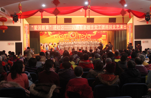 為大力弘揚愛國主義和延安精神,繼承黨的光榮傳統(tǒng),1月28日,八路軍老戰(zhàn)士文工團在北京市東城區(qū)和平里街道辦事處舉行了“愛國教育進社區(qū)”巡回文藝演出的首場演出。