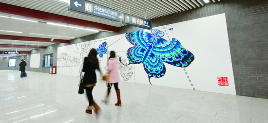 在法國電影《濃情朱古力》中,由朱麗葉特-比諾什扮演的薇安蘿雪帶著女兒遷居到一個小鎮并開了一間巧克力店。神奇的是,薇安蘿雪每次做出來的巧克力,都能滿足顧客的心理需求,發掘他們心中隱蔽的渴望,讓很多人原本封閉灰暗的生活有了新的色彩。聯想到北京地鐵新線藝術,不只有上述提到的那些作品,還有像鼓樓大街站《晨鐘暮鼓》(儀祥策、呂品晶)、白堆子站《鳳杏奇緣》(李震、路通)、美術館站《富春山居》(馬浚誠、王中)、安華橋站《水墨時空》(熊時濤、李震)以及軍博站《孫子兵法》(王中、武定宇)等作品都把中國的文化精髓展現得淋漓盡致。