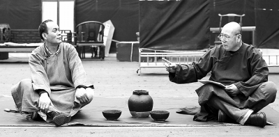 《王府井》排練劇照。張光北(左)、李成儒(右)資料照片