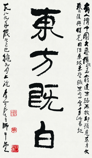 正值壬辰歲尾,北京畫(huà)院將傾情推出院藏書(shū)法作品舉辦“文心墨韻——北京畫(huà)院藏書(shū)法作品展”,這是北京畫(huà)院對(duì)于中國(guó)優(yōu)秀傳統(tǒng)文化研究成果的一次呈現(xiàn),也為首都佳節(jié)增添了一道亮麗的文化風(fēng)景線。展覽于1月29日在北京畫(huà)院美術(shù)館正式拉開(kāi)帷幕,并將持續(xù)到2月27日。作為北京畫(huà)院院藏作品系列展的重要組成部分,此次展覽集中了30余位書(shū)法家的作品70余件,全方位呈現(xiàn)了上世紀(jì)中葉北京地區(qū)的文化活動(dòng)情狀。圖為李可染所作《東方既白》:有人謂中國(guó)文藝傳統(tǒng)已至窮途末路,而我卻預(yù)見(jiàn)東方文藝復(fù)興曙光,因借東坡赤壁賦末句四字書(shū)此存證。