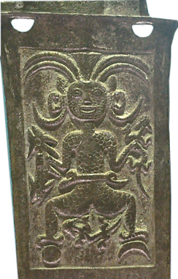 以蛇貫耳神人形象,楚墓出土銅戈