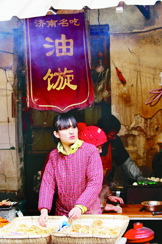 來到芙蓉街,腳下是青石板鋪成的路面,眼中是路邊一個個的小吃店,鼻中是各色小吃的香味,耳中是各路小販的吆喝。在芙蓉街,你既能品嘗到正宗的老濟南家常菜,也可以吃到濟南名吃油旋。油旋外皮酥脆,內瓤柔嫩,蔥香透鼻,因其形似螺旋,表面油潤呈金黃色,故名油旋。濟南人吃油旋多是趁熱吃,再配一碗雞絲餛飩,可謂物美價廉,妙不可言。油旋有圓形和橢圓形兩種。更有精細者,在油旋成熟后捅一空洞,磕入一個雞蛋,再入爐烘烤一會,雞蛋與油旋成為一體,食之更美。