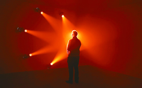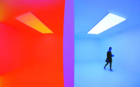 “光展”云集了22名來自世界各地的當代藝術家作品,其中卡洛斯·科魯茲·迭斯的作品《色彩滲透》尤為驚艷。《色彩滲透》是一個由紅色、藍色、綠色3種不同顏色的房間組成的人工環境。這3個房間的顏色籠罩著每一個進去的人,使其處于一種“絕對單色”的環境中。當人處于單一色彩環境時,視網膜會因為習慣于同時感知到一系列豐富顏色而產生混亂感,這種混亂感就像導火線,喚醒了觀者潛意識中對色彩的認知。