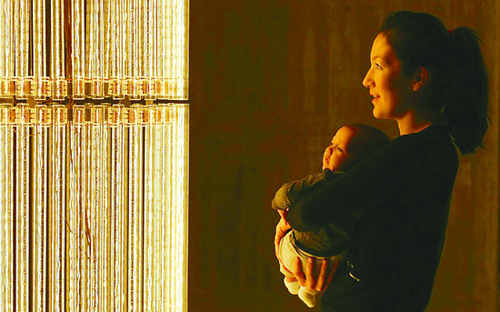 一位母親懷抱著嬰兒觀看賽瑞斯·溫·埃文的作品《超=級=結=構》 赫斯·克里夫 攝
