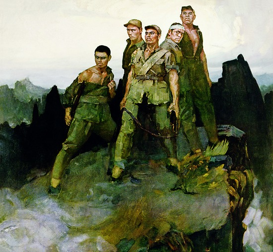 詹建俊先生是新中國油畫的代表性人物之一。從20世紀50年代中期開始,他總有帶著嶄新思考與新穎面貌的作品奉獻給社會,許多代表作品已成為新中國油畫藝術進程的標志,如《起家》《狼牙山五壯士》《高原的歌》《旭日》《潮》《飛雪》《晴風》《綠野》《回望》。他的油畫創作經歷了從“象征寫實到抒情表現”的探索歷程,從渾然的氛境,到后來信筆流淌出來的華彩,不斷朝向表達更自由、筆力更老辣、抒發更從容的境界邁進。