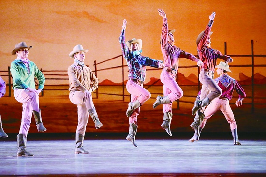 這是美國芭蕾舞團第二次來到國家大劇院演出。該舞團藝術總監凱文·麥肯金顯得很興奮:“能夠重返國家大劇院,是一種殊榮。這次我們帶來的劇目是純正的‘美國派’,特別是前兩場現代芭蕾集錦,三位美國編舞大師馬克·莫里斯、何塞·利蒙和阿格尼斯·德·米勒的作品,將向大家展示ABT在當代視角下的出眾才華。而后三場《天鵝湖》則是由我本人在2000年的時候根據經典版本改編的,我們在舞劇開頭加了一個序幕,描述公主被魔王擄走幻化成天鵝的過程,使得全劇的戲劇結構更加完整。”圖為《牛仔競技》彩排照。