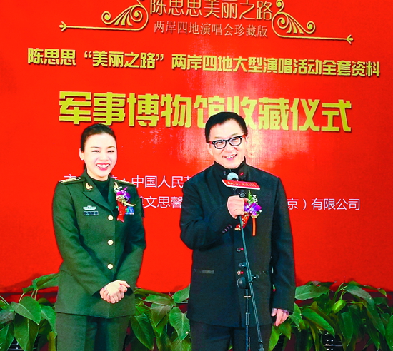3月9日,全國政協(xié)委員、青年歌唱家、二炮文工團副團長陳思思的“美麗之路”大型演唱活動全套資料被中國人民革命軍事博物館正式收錄,這是自1959年該館成立以來第一次收錄并展出個人文化交流與音樂相關的全套資料,也是對陳思思個人在文化交流方面作出貢獻的肯定。同時,陳思思還被授予中國人民革命軍事博物館“榮譽館員”的稱號,她也成為繼楊利偉、成龍之后,第三位獲此殊榮者。“陳思思是小輩兒,竟干大事兒”,全國政協(xié)委員姜昆這樣評價她。“美麗之路”大型演唱活動全套資料的展出,展現(xiàn)了“美麗之路”系列演唱會在增進兩岸同胞的血脈深情、加強同港、澳、臺地區(qū)的文化交流合作等方面發(fā)揮的重要作用,使之成為弘揚中華優(yōu)秀傳統(tǒng)文化的亮麗品牌。
