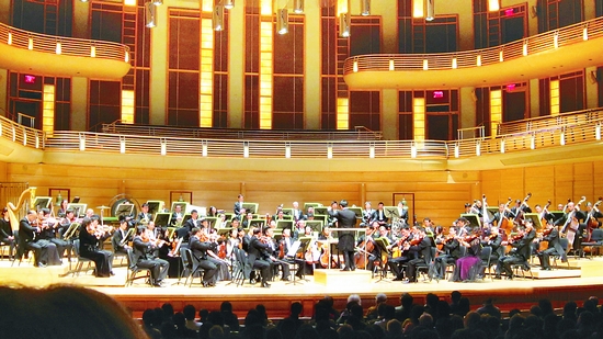 這次巡演,樂團演奏了貝多芬第七交響曲、拉赫瑪尼諾夫第二交響曲和理查·施特勞斯的交響詩《英雄生涯》這樣的大部頭交響曲,也演奏了柴科夫斯基第一鋼琴協奏曲、西貝柳斯小提琴協奏曲、《梁祝》小提琴協奏曲、康戈爾德的小提琴協奏曲和《黃河》鋼琴協奏曲,還帶去了關峽的《大地安魂曲》第一樂章這樣的交響樂新作。樂團由杰出的華人指揮家李心草和邵恩執棒,分別與在國際比賽中獲得大獎的杰出的華人青年音樂家龔天鵬、吳牧野、黃濱、李傳韻、徐揚進行了合作。李心草指揮的理查·施特勞斯的交響詩《英雄生涯》,凸顯大師在嚴謹的曲式結構中噴涌出浪漫激情的神來之筆。參差錯落的織體中復調與和聲并存。有人說優秀的指揮家能從樂隊隊員身上“榨出”情感來,而拉赫瑪尼諾夫是一位能從樂隊那里“榨出”效果的作曲家,邵恩帶領樂隊充分發揮了樂團音色堅實而清亮的特長,聲音始終充滿了張力,將拉赫瑪尼諾夫的第二交響曲演奏得得心應手,激情澎湃。