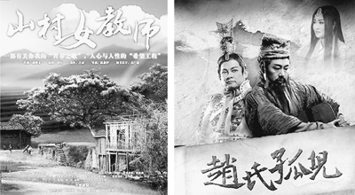 歌劇《山村女教師》、《趙氏孤兒》海報。