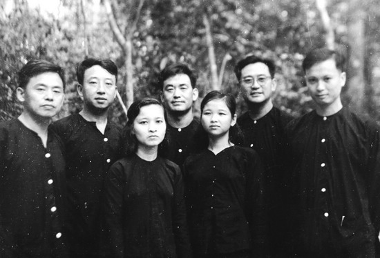 “中國作家記者組”與接受采訪的越南女子合影,后排中間者為徐懷中