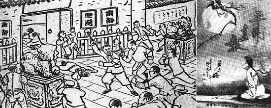 除此之外,展覽中還展出了一幅1911年7月出版的《平民畫報》刊載的黃花崗起義軍“焚攻督署”圖。此圖形象描繪了在1911年4月27日下午5時半,黃興率領先鋒隊攻打兩廣總督府時的情形。圖中先鋒隊隊員們臂纏白巾,手執(zhí)槍械炸彈,將督府衛(wèi)兵一舉攻潰,并準備放火焚燒督府衙門。此圖刻畫得形象傳神,充分表現(xiàn)了起義軍臨危不懼、英勇豪邁、不怕犧牲的革命氣概和崇高品格。
