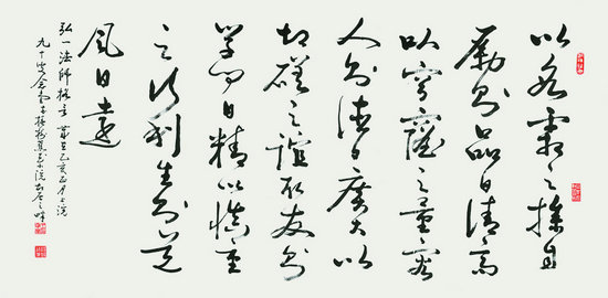 “就好像交響樂,是有規律的,錯一個音都不行,但沒有人攻擊卡拉揚指揮那么嚴格,馬連良的唱片聲音嗤嗤的,但是他的聲音和胡琴,誰也比不了。偏就中國書畫可以沒有規矩了,為了創新,飛蛾撲火,各領風騷三四年,毀了很多藝術家,從85新潮到現在,有幾個可以和李可染相媲美?關鍵是我們沒有踩到傳統的根上。對于藝術,我們還存在著‘運動’心理,真正的文化建設,是傳承,這需要我們冷靜地來思考。”張明明坦言道。
