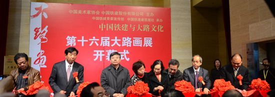 4月19日,第十六屆“大路畫展”在中國美術館隆重開幕。本次展覽由中國美術家協會、中國鐵建股份有限公司聯合主辦,中國鐵建黨委宣傳部、《中國鐵道建筑》報社承辦。展期將延續至5月2日。中國美術家協會分黨組書記、駐會副主席吳長江,中國美協分黨組副書記、秘書長劉健,徐悲鴻紀念館館長、徐悲鴻夫人廖靜文,中國美術家協會理事、北京市美協副主席王沂東,中國鐵建股份有限公司董事長、黨委書記孟鳳朝等出席了開幕式。