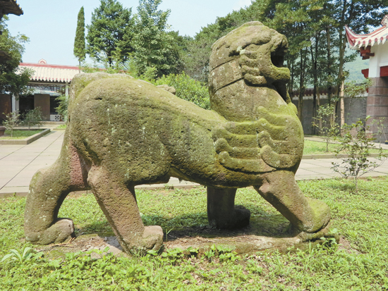 高頤闕前面有圓雕“辟邪”石獸,它虎頭獅身,雙肩有翼,生動雄健。“辟邪”象征著祥瑞。 趙良冶 供圖