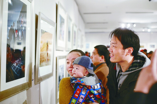 爸爸的作品被懸掛在墻上,媽媽會帶著一歲左右的孩子來參觀。孩子胖嘟嘟的小手指向爸爸的攝影作品時,全家人臉上都笑開了花。有彎著腰看的、側著頭看的攝影愛好者,有三兩成群議論點評的朋友,還有小姑娘面露驚訝或羨慕的神情。