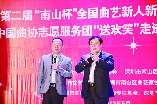 5月3日至4日,由中國曲協(xié)和深圳市曲協(xié)等單位主辦的第二屆“南山杯”全國曲藝新人新作展演在深圳成功舉辦。中國曲協(xié)主席姜昆,中國曲協(xié)分黨組書記、駐會副主席董耀鵬,中國曲協(xié)分黨組副書記刁惠香,中國曲協(xié)副主席、廣東省文聯(lián)副主席李時成,廣東省文聯(lián)黨組副書記、專職副主席曹利祥等領(lǐng)導(dǎo)和著名曲藝家常貴田、李金斗、牛群、趙炎、奇志、楊子春等參加活動。