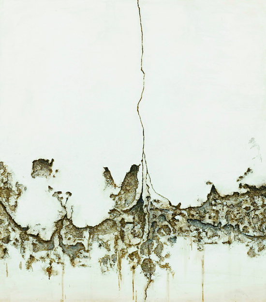《哭泣的墻》是應(yīng)天齊在今年創(chuàng)作的材料繪畫,顧名思義,其中表現(xiàn)出來的悲愴、祭奠與緬懷之情,再一次呈現(xiàn)出作者對于東方審美的體驗(yàn)與表達(dá),給人以“長歌當(dāng)哭”的觸動。