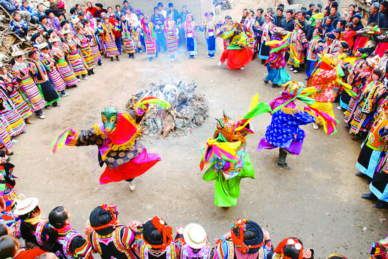 “烤街火長(zhǎng)節(jié)”以寨子為單位,以火為紐帶,全民參與的一項(xiàng)重大活動(dòng),從臘月初八開(kāi)始,到第二年正月十七結(jié)束,歷時(shí)四十天。烤街火長(zhǎng)節(jié)包括湊柴、烤火、講故事、聊天、跳舞、正月十五迎火把等活動(dòng)。在這四十天時(shí)間里從不間斷,年年如是。
