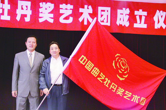 5月13日上午,中國曲藝牡丹獎藝術團正式成立。成立儀式上,李前光向藝術團團長姜昆授旗。隨后還召開了中國曲藝牡丹獎座談會。