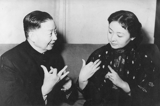 一九五七年陳伯華與梅蘭芳先生切磋手式