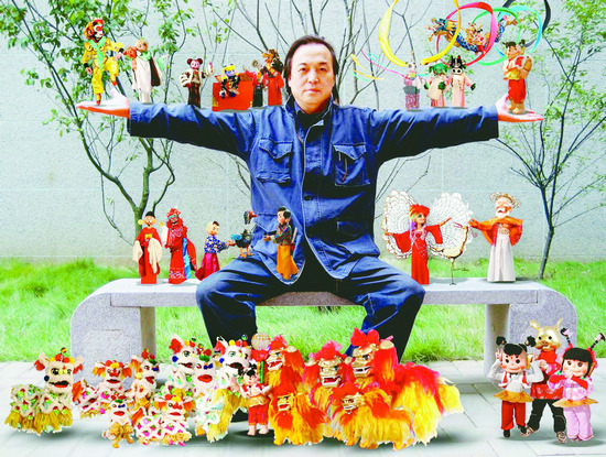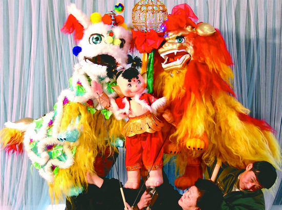 曹繼宗設(shè)計(jì)制作的具有濃郁中國(guó)元素的杖頭木偶形象小金娃和獅子