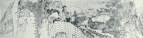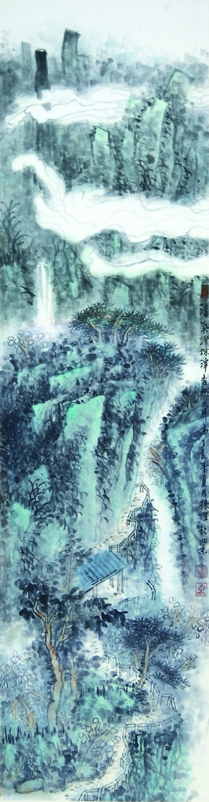 在山水畫的學習、創作中,孫愷始終堅持了師古人、師自然、師造化的原則。在創作過程中,她始終以南齊謝赫“氣韻生動、骨法用筆、應物象形、隨類賦彩、經營位置、傳移模寫”六法為準則。一個真正的畫家所創作的作品從來都是以激情作為支撐的。激情來源于生活,激情來源于感動。一幅打動人的優秀作品應該是畫家感悟生活、心潮澎湃的結晶。那些閉門造畫、營造臆想的所謂畫家,不管他的技法有多么純熟,也不管他的構思有多么巧妙,只要脫離了生活的根基,只要遠離了自然的脈搏,他筆下所產生的畫作就一定是蒼白無力與單薄膚淺的,就一定是形而上、情而下,無血無肉、徒有虛表,毫無思想內涵的素幅彩紙。這些年來,孫愷廣涉名山大川及窮廬茅舍,她以女性特有的敏感之心,反復體味揣摩大自然的情態意蘊,反復感受觸摸老百姓的艱辛滄桑。她的寫生經歷不只是簡單的體會自然與感受生活,她更注重了一種對自然萬象深層次、全身心的徹底融入之情。她在這十多年里,寫遍祖國的大好河山。北方太行山脈的十渡她去寫生過五次,兩次去寫生石家莊附近的嶂石巖,多次寫生平谷的京東大峽谷,以及北京郊區的燕山、云蒙山、白楊溝、棋盤山等等。太行山的郭亮、南坪、紅旗渠一帶,孫愷一去寫生就是五六個月,從烈日炎炎的七月一直到下過三場大雪的臘月底才回家過年,一次就在太行山上連續經歷酷夏、金秋、嚴冬三個季節。在南方的張家界,從二零零三年大年初十寫生到七月二十八日,她飽覽了張家界從山上到山下整個春天和初夏才肯下山。六次去黃山,從山腳寫到山頂,她還寫生了黃山腳下的好多地方,如休寧大峽谷、歙縣地帶的小橋流水人家,西遞、宏村等。她也寫遍了廣西漓江的每一流域,如漓江的陽朔、興坪一帶的疊彩山、象鼻山、穿山、塔山、冠巖山、凈瓶山、浪石奇渡、九馬畫山、黃布倒影、楊堤、草坪、田螺峰、碧蓮峰、書童山等等。她還幾次赴四川的青城山、峨眉山、四姑娘山、樂山、齊云山、九寨溝以及川西的海螺溝體驗寫生。近幾年她的視線又轉向西部的新疆、西藏一帶,而且創作出一批表現大美西部的系列作品。不久,她又去了云南的西雙版納熱帶大森林。大量的寫生作品中,傾入了她對真實生活大量的有情有義的主觀感受。從她連續十多年長期在深山老林、經歷了多少個酷暑和嚴寒,以及頂風冒雪的堅韌舉動中,可以窺見她對于自己所鐘愛的中國畫藝術的追求是何等的執著。在浩瀚的美術創作大軍中,誰能夠真正觸摸到生活與自然的脈搏,誰就能夠創作出最感人、最生動的藝術作品。要使自己的作品感動別人,就要在創作的過程中先感動自己,這是一條既簡單又深奧的真理。所有的這些,孫愷用自己近乎苦行僧的實際行動默默地實踐了,真誠地做到了,這是一件非常不容易的事情。孫愷的意筆山水來源于她對自然山水的真實感受。她所創作的大量山水畫作品,無論從形式到內容,都向我們展示了一種毫不做作、毫無臆想的真情流露。藝術的難點在于藝術家個體藝術符號的確立。經過了二十余年的繪畫創作與藝術歷練,孫愷終于從傳統藝術之外、生活之中尋到了屬于自己的藝術表達方式。她的山水畫作品中彰顯出屬于她自己的一種既傳統又現代,既具象又抽象的藝術語匯。實現這個目標:畫家要經歷無數次痛苦的心靈煎熬,要體味情感悵然若失的無措和真正的形式蛻變。