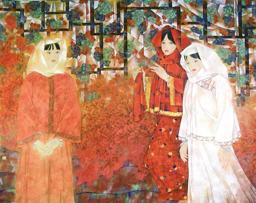 近二十年來,一直活躍在中國畫壇的女畫家孫愷,就是一位有著遠大理想、全身心投入到時代美術創作中的勤奮之人。孫愷在二十世紀八十年代中期就以優異的成績考入中央工藝美術學院。在四年大學的學習期間,她利用所有空余時間游學于張仃、沈鵬先生門下,刻苦鉆研書畫藝術。自中央工藝美術學院畢業后,她又考入中央美術學院國畫系,研究生畢業獲碩士學位。在兩所中國美術最高殿堂,她接受了最正規最系統的美術教育。在中央美術學院七年的學習期間,在諸多老師的指導下,她臨摹了大量的歷代名作和傳統壁畫。一九九八年,孫愷又參加了文化部首屆重彩畫高研班,從此,她在繼承傳統工筆重彩畫技法的基礎上,潛心研究符合當今時代發展的巖彩繪畫技法、材料和色彩構成。所有這些正規嚴謹的訓練與研究,為孫愷日后的中國畫創作奠定了堅實的基礎。通覽孫愷二十余年來創作的中國畫作品,我們可以清晰地看到畫家在不同時期所經歷過的不同創作心跡。