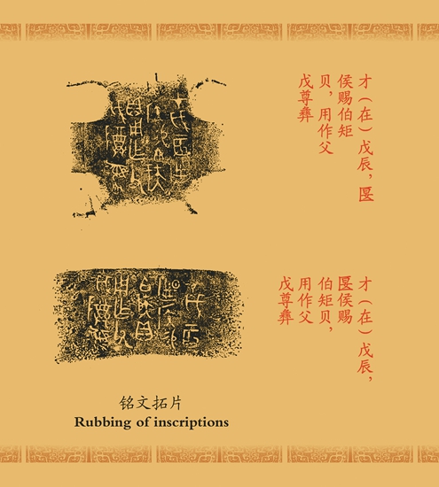 伯矩鬲內壁上的銘文也一樣很簡單。大體意思是,某一日,匽侯賞給矩一些貝,他為了紀念這份榮耀,為其已故的父親作此禮器。銘文中也提到了“匽侯”二字。