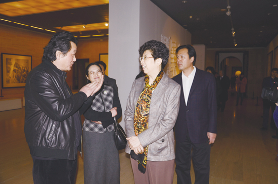 中國文聯(lián)黨組書記、副主席趙實(shí)與畫家張江舟在展覽現(xiàn)場