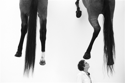一位觀眾在瑞士巴塞爾觀看意大利藝術(shù)家莫瑞吉奧·卡特蘭的作品。圖/IC