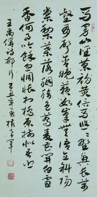 書法有多種字體,每種字體可創作出不同的風格,從表意角度審視書法,草書和行草書表現力最強。我兼寫多種字體,創作的主要書體是草書和行草書,運用草書、行草書的不同技法,采用不同性能的毛筆和宣紙創作出不同風格的作品,力求表現千變萬化的情感,從而突破了千作一面。在探索中我行我素,但無論采用何種方法,始終不離傳統,堅持在傳統的基礎上求變化、求發展,走出了自己的一條路。