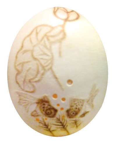 明清時期,民間慶賀孩子出生有送紅雞蛋的習俗,因此商販們會專門賣紅色染過的雞蛋,稱其為“彩蛋”。為圖生意興隆,商販們又各出奇招,在彩蛋上畫些花鳥、魚蟲、臉譜等圖案。再后來,由畫入雕,這小小空間里的世界是越來越精彩。大體說來,蛋雕的功夫主要有兩種,一種是描文勾勒,在蛋皮表面以浮雕、陰刻、陽刻來成畫,類似于美術中的素描。顏色較深的雞蛋殼是孕育此上乘功夫的絕佳場地。另一種則是◇空雕刻,精髓在于◇刻,習此門武藝之人技藝是否純熟精湛一目了然。