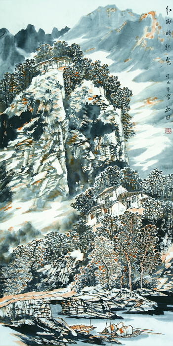 李玉田從不以固定的繪畫語言表現(xiàn)復(fù)雜多變、具有靈性的自然。他說,“我崇尚獨立自由的精神。畫移性情,成教化,令人回歸自然的真、善、美,讓人們熱愛生活,熱愛山水,熱愛大自然,夫畫能為社會和諧和精神文明而事之,甚幸哉。”