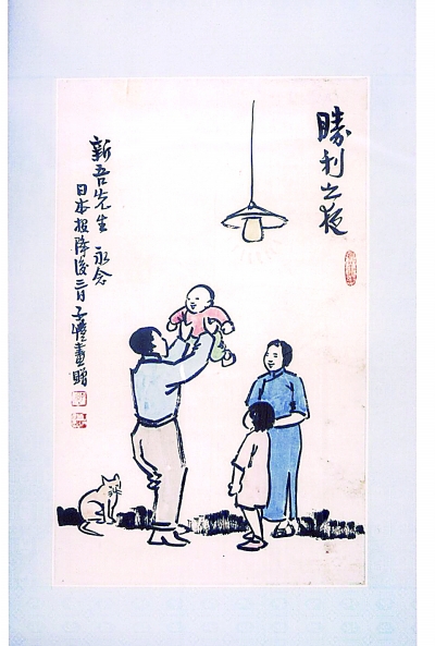 1945年8月18日,日本宣布投降后3天,豐子愷創作的漫畫《勝利之夜》。本報記者 李韻攝
