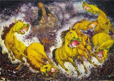 何延續的追問。圖為布面油畫作品《救贖的馬車》。主辦方供圖