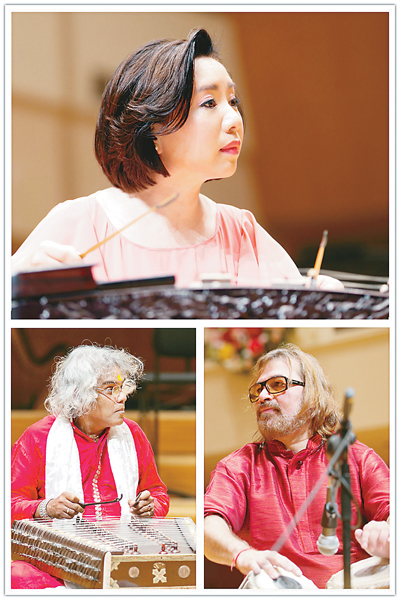 劉月寧(上)在“中印之夜”音樂會與印度音樂家合奏《拉格·茉莉》
