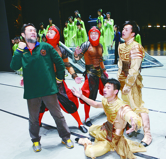 陳維亞(左一)在輔導舞劇《馬可·波羅》演員表演