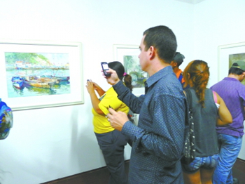 此次展覽匯集了宋彬的《碼頭》、周剛的《女人體》、王紹波的《嶗山》、白統緒的《周莊風情》等當代中國水彩畫壇的名家名作。技法精湛、匠心獨運的作品展現了“中國當代水彩畫”的風貌及中國畫家獨特的審美情趣,得到了委觀眾的交口稱贊。在當地美術界人士的強烈呼吁下,中國駐委使館同意將原定一個月的展期延長至兩個月。
