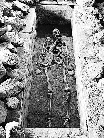 據(jù)專家統(tǒng)計(jì),在目前發(fā)現(xiàn)的牛河梁墓葬中,挖掘出土的尸骨近百具,在第二地點(diǎn)、第五地點(diǎn)、第十六地點(diǎn)均有中心大墓。最吸引眼球的是第五地點(diǎn)中心大墓的這具老人遺骨。