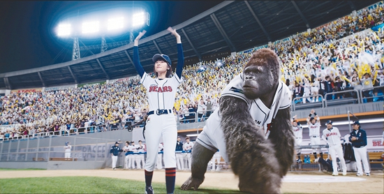 作為一部主打3D和動(dòng)作捕捉技術(shù)的體育片而言,《大明猩》的視覺形式無疑是可圈可點(diǎn)的,至少在亞洲電影范圍內(nèi)。大猩猩MR.GO會(huì)打棒球這一點(diǎn)是全片最大的賣點(diǎn),雖然全片未能在3D效果方面有一個(gè)持續(xù)的表現(xiàn),但大猩猩的每一次擊球都讓3D與觀眾心理產(chǎn)生了極好的互動(dòng)。在轉(zhuǎn)制3D片大行其道的當(dāng)下,《大明猩》提供了一定程度上的視覺奇觀。同時(shí),通過動(dòng)作捕捉技術(shù)而出現(xiàn)在銀幕上的大猩猩幾乎可以媲美《猩球崛起》中的猩猩以及《少年派的奇幻漂流》中的老虎。