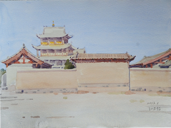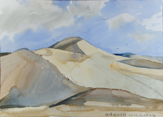 近日,中國文聯、中國美協組織采風團,赴甘肅河西走廊舉行“追尋中國夢——美術家寫生創作基層行”活動。劉大為、馬新林、孫志鈞、駱獻躍、王界山、忻東旺、康蕾等來自全國各地,涵括中國畫、油畫、版畫、水彩粉畫等多個畫種的美術家,經過武威、張掖、嘉峪關,直至敦煌,行程1200多公里。在綿亙千里的絲綢之路上,他們遍覽黃河、草場、雪山、戈壁、荒漠等變幻多彩的自然景觀,體驗裕固族、哈薩克族的風土人情,描繪肅南的丹霞地貌奇觀,登臨萬里長城西端險要關隘嘉峪關,觀賞魏晉壁畫墓,流連并震撼于敦煌莫高窟的絕美壁畫和雕塑。本版擇其部分美術家的寫生作品,以饗讀者。