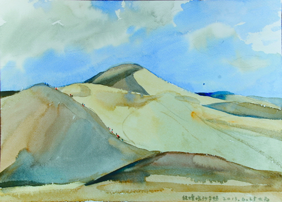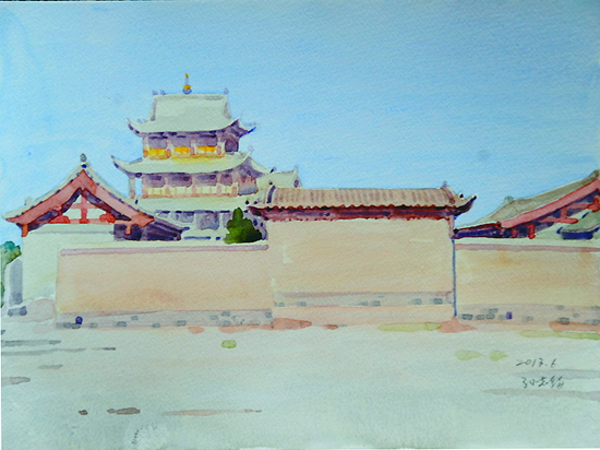 近日,中國(guó)文聯(lián)、中國(guó)美協(xié)組織采風(fēng)團(tuán),赴甘肅河西走廊舉行“追尋中國(guó)夢(mèng)——美術(shù)家寫(xiě)生創(chuàng)作基層行”活動(dòng)。劉大為、馬新林、孫志鈞、駱獻(xiàn)躍、王界山、忻東旺、康蕾等來(lái)自全國(guó)各地,涵括中國(guó)畫(huà)、油畫(huà)、版畫(huà)、水彩粉畫(huà)等多個(gè)畫(huà)種的美術(shù)家,經(jīng)過(guò)武威、張掖、嘉峪關(guān),直至敦煌,行程1200多公里。在綿亙千里的絲綢之路上,他們遍覽黃河、草場(chǎng)、雪山、戈壁、荒漠等變幻多彩的自然景觀,體驗(yàn)裕固族、哈薩克族的風(fēng)土人情,描繪肅南的丹霞地貌奇觀,登臨萬(wàn)里長(zhǎng)城西端險(xiǎn)要關(guān)隘嘉峪關(guān),觀賞魏晉壁畫(huà)墓,流連并震撼于敦煌莫高窟的絕美壁畫(huà)和雕塑。本版擇其部分美術(shù)家的寫(xiě)生作品,以饗讀者。
