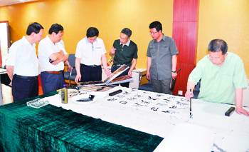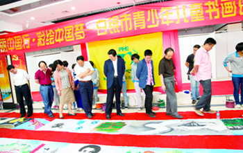 書畫名家和白銀市領導觀摩青少年集體創作長卷