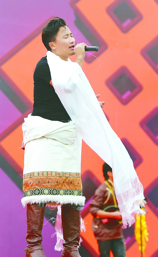 藏族組合“尼瑪樂隊”成員演唱《生命站立成樹》
