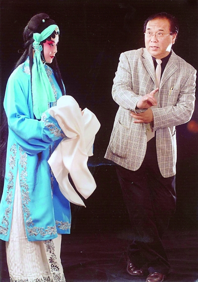 石磊(右)在指導梅花獎得主徐俊霞排演他所編劇的《女貞花開》。