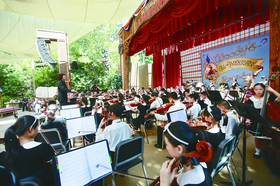 在我國中小學形形色色的藝術團隊中,有一支被音樂界親切稱為“小金帆”的交響樂團——北京市海淀區中關村二小金帆交響樂團,它是北京冠以“金帆”的藝術社團中唯一的一支小學生金帆樂團,也是國內唯一一支全部由小學生組成的交響樂團。近些年每逢暑假,“小金帆”即會應邀赴歐美等國參加各種藝術節和比賽。今年7月21日至28日,“小金帆”赴美展開“樂夢·美之旅”音樂交流系列活動。“小金帆”的孩子們參加藝術節、上大師課、義演,凝聚著汗水和少年智慧的動人旋律灑落在大洋彼岸的大學校園、音樂廳、教堂、敬老院、迪斯尼樂園等場所,一個個小小演奏家品嘗到了成功的喜悅和音樂帶給他們的巨大幸福和榮光。