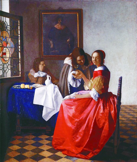 “你的夢境已至臻榮耀且終將燃盡”,因翅膀融化而溺亡深海的伊卡洛斯在無限接近太陽時一定忘記了詩人的讖語。但在中國青花瓷瓶和波斯羊毛掛毯中盡享黃金時代、在最早的股票交易中坐地生財的荷蘭先民卻不敢忘記,他們將這個樂極生悲的年輕人鐫刻在阿姆斯特丹市政廳破產處的門楣上,讓過往于此的每一個人自問自省。當信仰型、風俗型傳統社會被幾何增長的貿易總量擊潰,資本與市場成為決定航向的舵輪,連一向陽春白雪的藝術都把描繪對象鎖定為俗世生活的瑣細片段時,對榮耀和享樂的過度沉迷是否會導致伊卡洛斯的悲劇最終降臨?在當時的荷蘭,維米爾是對這種恐懼思考最深刻的藝術家,《持酒杯的女孩》則是直面這種憂慮的終結之作。