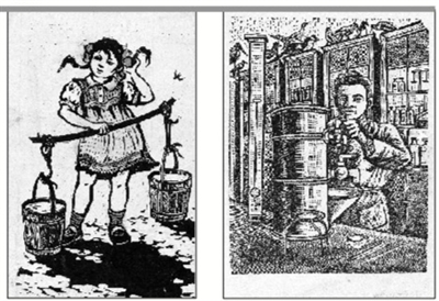 1962年作品《能挑重擔》(左)、1937年作品《精心操作》。(右)