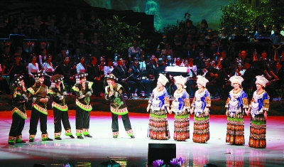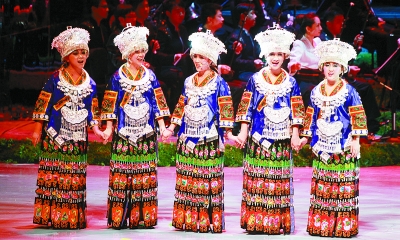 此外,《仰歐?!返呐c眾不同之處在于突破了傳統(tǒng)苗族歌舞節(jié)目單一重視表演的習(xí)慣,讓管弦樂團(tuán)也成了歌舞劇的藝術(shù)主體。中央民族樂團(tuán)的現(xiàn)場(chǎng)演奏讓觀眾如癡如醉,掌聲不斷。出席觀看當(dāng)晚演出的貴州省黔東南州州委書記李飛躍、州長(zhǎng)廖飛對(duì)這一創(chuàng)新展示苗族文化的歌舞劇贊不絕口。