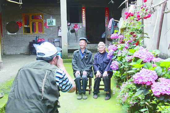 在“為農(nóng)民照相——攝影作品進萬家”活動中,成都攝影志愿者在邛崍夾關(guān)鎮(zhèn)為村民照相,這是他們生平第一次照相 楊成農(nóng) 攝